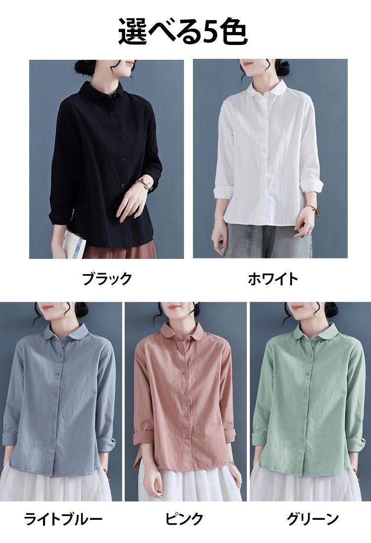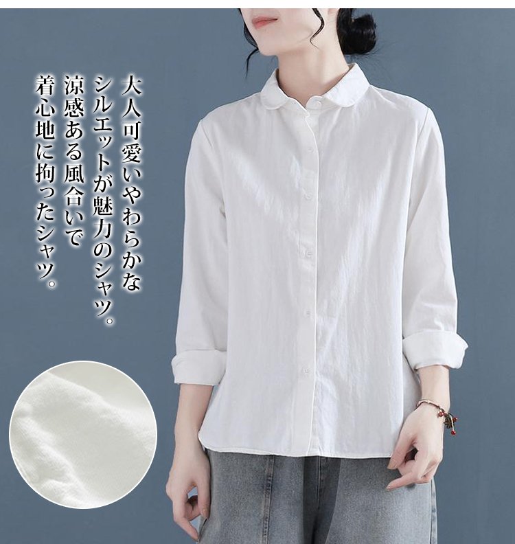 大人可愛い綿麻ラウンドカラーシャツ長袖